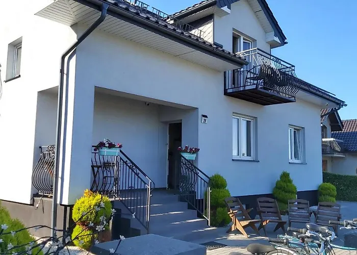 7-slaapkamer Pokoje Klaudia Appartement appartement biedt uitzicht op de tuin en ligt op s10 minuten met de auto van de Plaża w Rzucewie. Daarnaast heeft de accommodatie bij particulieren een terras met een eettafel voor volledig comfort van de gasten.